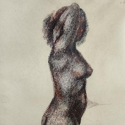 Desnudo femenino. Carboncillo y sanguina sobre papel. Firmado y fechado 47.