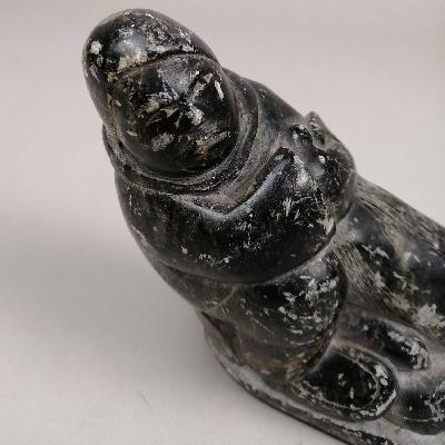 Hombre con peces. Escultura tallada en piedra jabonosa.