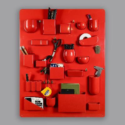Organizador Uten.Silo I, años 70. Elaborado en plástico ABS rojo con pinzas de latón.