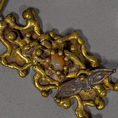 Más informaciónGargantilla, años 70. Estilo Brutalista. Bronce fundido. Diseño liso con dije cinético de diseño orgánico con fragmento de ópalo.