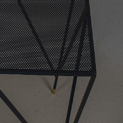Mesa pedestal en acero negro con casquillos de latón de la Línea Acapulco Trouvé