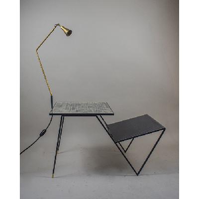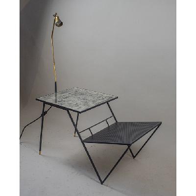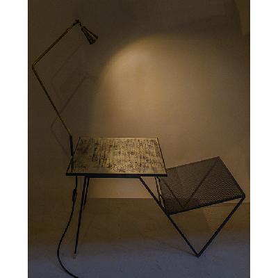 Línea Acapulco Trouvé. Par de mesas laterales en acero negro con lámparas