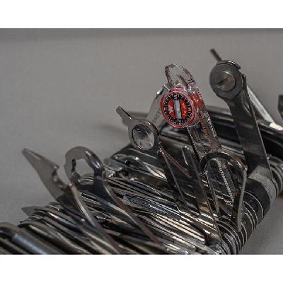 Navaja gigante 16999. Délemont, Suiza, 2007. Elaborado en acero. Con 87 herramientas y 141 funciones. Modelo ganador del récord Guinness. Con certificado, par de pilas AAAA, caja y estuche originales.