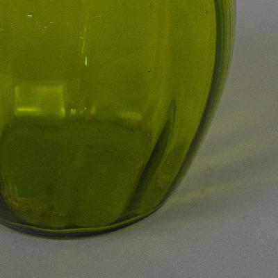 Florero elaborado en vidrio color verde. Diseño gallonado interior con boca alargada.