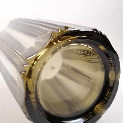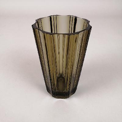 Florero. Francia, años 60. Elaborado en vidrio prensado ahumado. Diseño estriado.