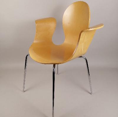 Par de sillas Crop. Italia, años 2000. Madera contrachapada y moldeada de fresno con soportes cromados.
