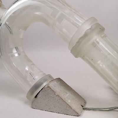 Lámpara de mesa estilo industrial en vidrio químico Schott.