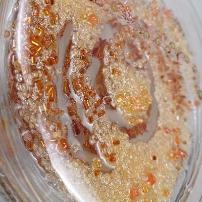 Pilar Pedroza. Micro Quasar. Cajas de Petri, lentejuela, pedrería y resina.