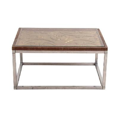 Par de mesas laterales estilo Ecléctico en madera tallada y metal cromado y