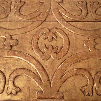 Par de mesas laterales. México, años 70. Estilo Ecléctico. Cubiertas rectangulares en madera tallada y dorado sobre soportes de metal cromado.
