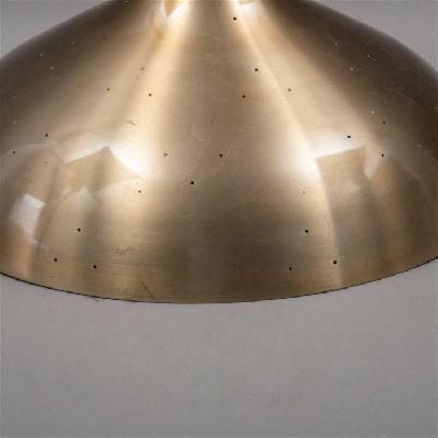 Lámpara de techo. Latón con interior laqueado blanco. Para 2 luces. Diseño en forma de campana con perforaciones.