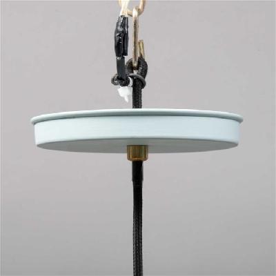 Lámpara de techo. Metal laqueado color azul turquesa. Para 1 luz. Diseño en forma de campana con interior blanco y soportes de latón.