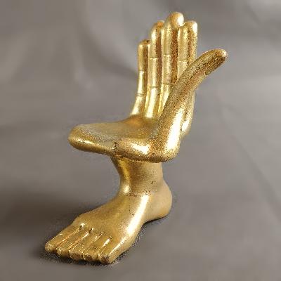 Mano - pie derecha. Resina con acabado de oro bruñido. Firmada en base.