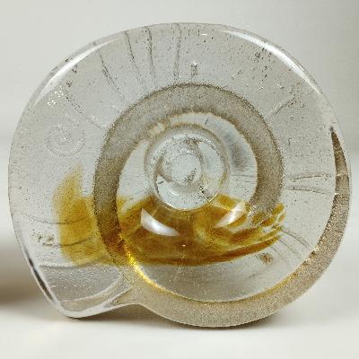 Más informaciónPar de portalibros. Cristal prensado. Diseño en forma de caracolas con detalles en colores rojo y ámbar.