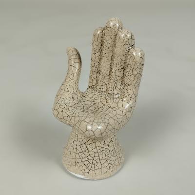 Pedro Friedeberg. Mano-campana mediana craquelada color arena. Cerámica. 16cm P/U