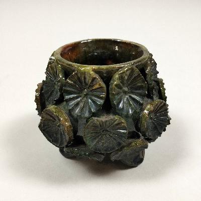 Juego de 7 vasijas. San José de Gracia, Michoacán, años 50. Barro verde. Diseño con rosetones.