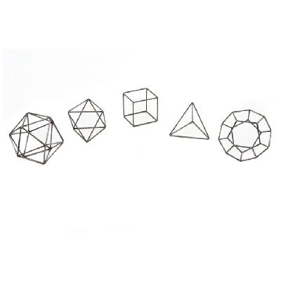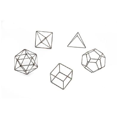 Set de poliedros regulares elaborados en hierro tubular. Consta de: cubo, tetraedro, hexaedro, dodecaedro e icosaedro.