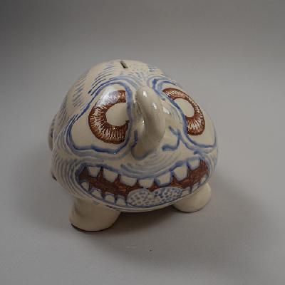 Puerco. Alcancía de cerámica pintada mano.