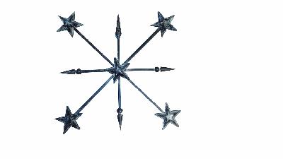 Cruz cardinal de hierro forjado con estrellas y lanzas