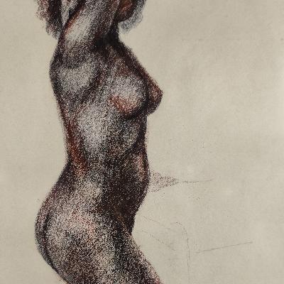 Desnudo femenino. Carboncillo y sanguina sobre papel. Firmado y fechado 47.