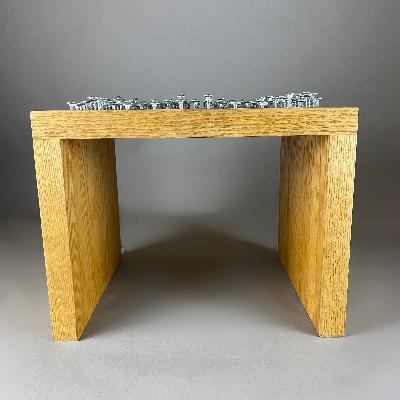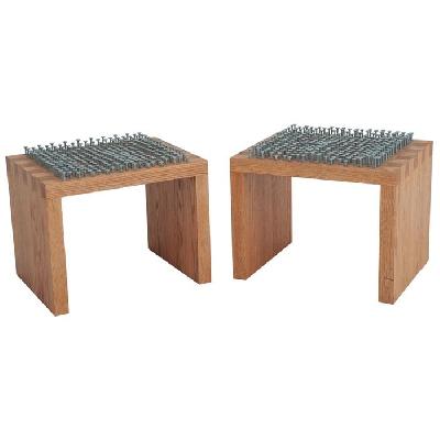 Emiliano Godoy. Par de taburetes Estudio en madera de encino blanco y tornillos de acero inoxidable (P/U)