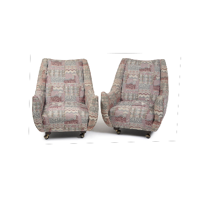 Tyasa. Par de sillones en madera con tapicería multicolor