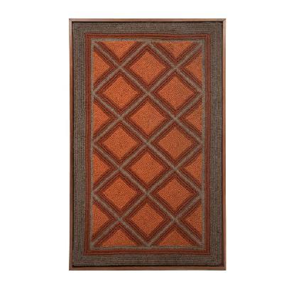 Tapete Triángulos Gris y Chauroom. México, 1983. Elaborado en lana anudada a mano. Diseño de rombos con borde liso. Enmarcado.