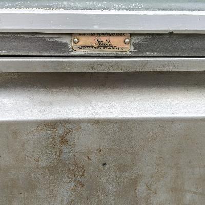 Par de mesas de noche. México, años 70. Elaboradas en acero. Puerta sobre soportes cónicos.