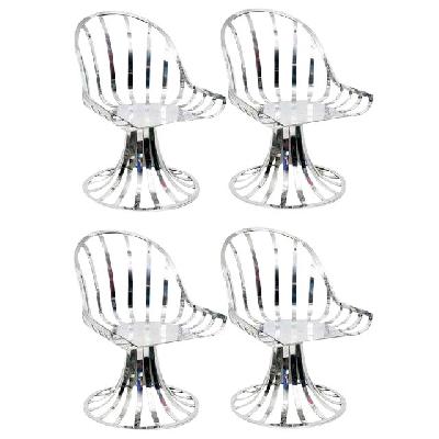 Juego de sillas para exterior, años 70. Elaboradas en aluminio pulido. Respaldos curvos con barandillas y soportes hiperboloides.