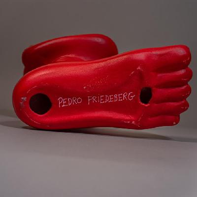 Mano pie. Elaborada en cerámica roja. Firmada en base.