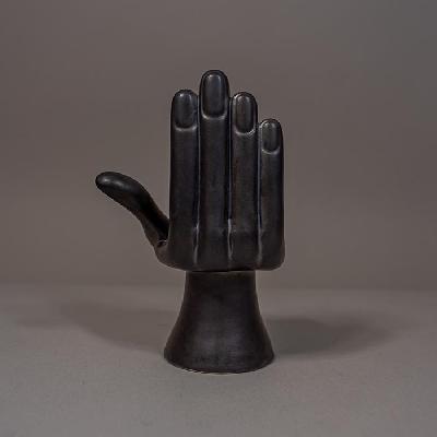 Mano - campana. Escultura de cerámica color grafito. Firmada en base.
