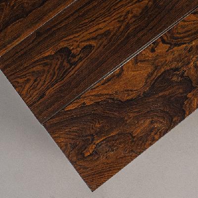 Mesa lateral. México, años 70. Sobre el diseño de Don S. Shoemaker. Elaborada en madera de cuéramo. Cubierta cuadrangular sobre soportes lisos.