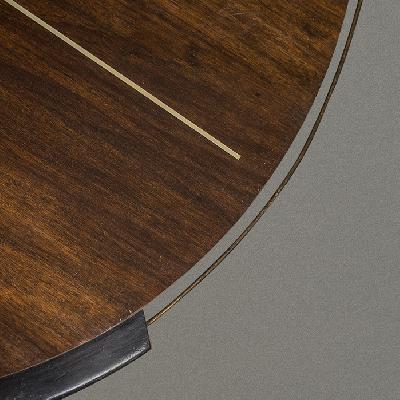 Mesa de centro redonda estilo Danés en madera de nogal y latón con vivos laqueado color negro