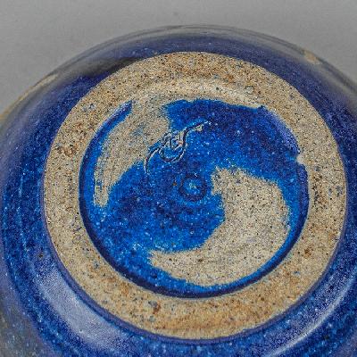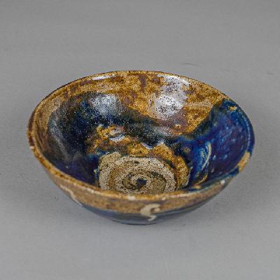 Plato en cerámica de alta temperatura azul, ocre y blanco