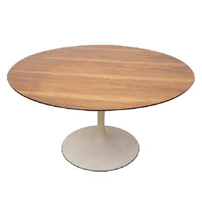 Eero Saarinen para Knoll Internacional de México. Mesa de comedor Tulip blanca con cubierta de nogal
