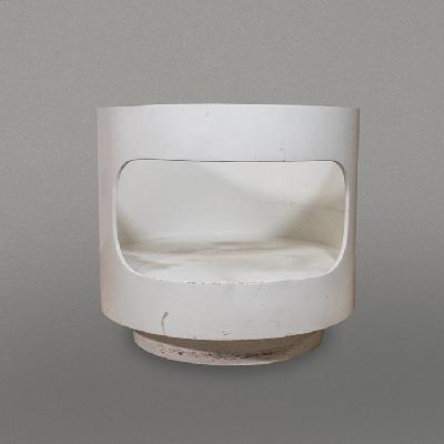 Gabinete, años 70. Elaborado en plástico blanco. A 2 niveles. Con cubierta superior de vidrio.