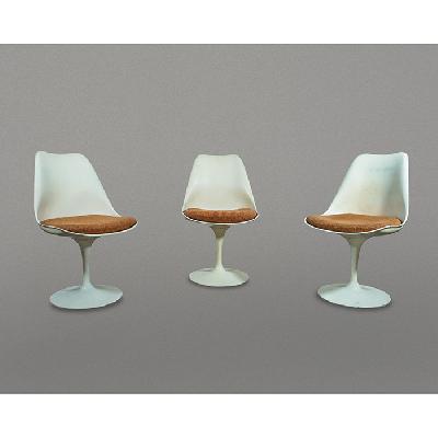Eero Saarinen para Knoll Internacional de México. Juego de 6 sillas Tulip en aluminio y fibra de vidrio blanco (P/T)