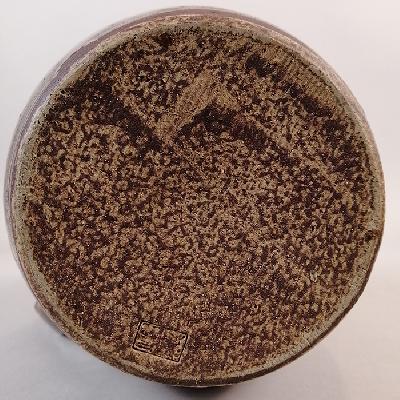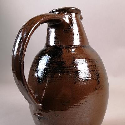 Más informaciónJarra elaborada en cerámica de alta temperatura, acabado brillante café y negro. Con sello no identificado en base.