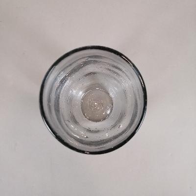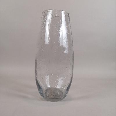 Florero elaborado en vidrio soplado, acabado rústico.