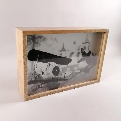 Sin título. Ensamble fotográfico sobre vitrina de madera.
