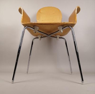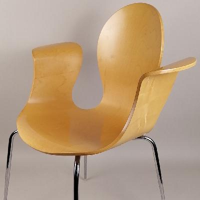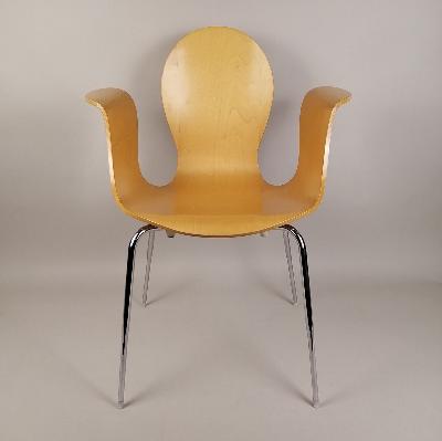 Par de sillas Crop. Italia, años 2000. Madera contrachapada y moldeada de fresno con soportes cromados.