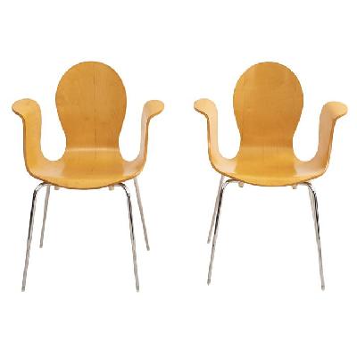 Ross Lovegrove para Fasem. Par de sillas Crop en madera enchapada y metal cromado (P/PAR)