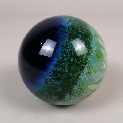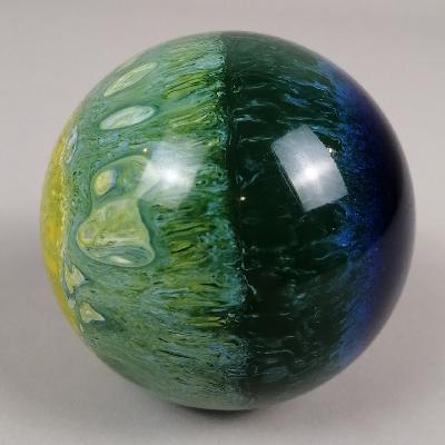 Esfera en pasta con colores verde, amarillo y azul.
