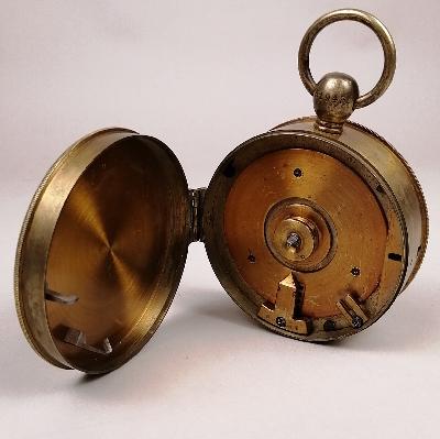 Reloj de velador, siglo XIX. Caja circular de latón. Serie 91943.