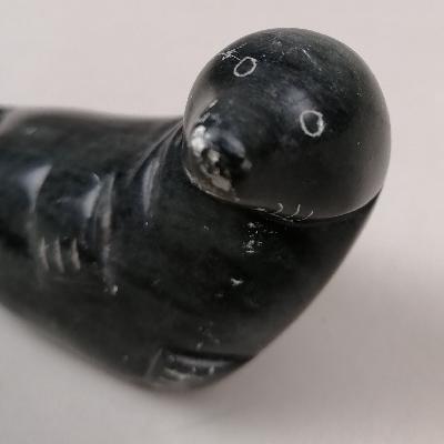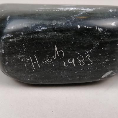 Escultura con forma de foca en mármol negro. Firmado HERB y fechado 1983