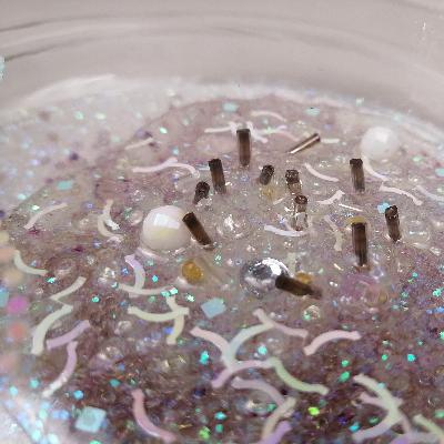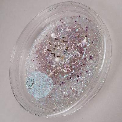 Pilar Pedroza. Caldo Marino. Cajas de Petri, brillantina, pedrería, lentejuela y resina.