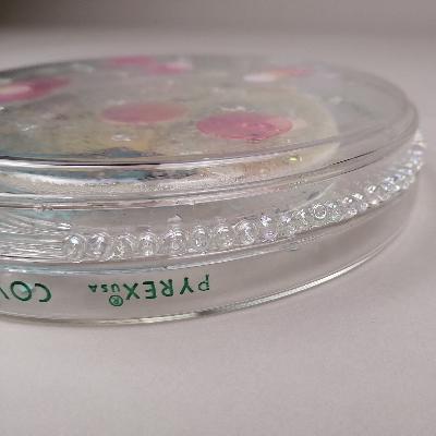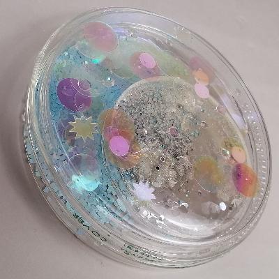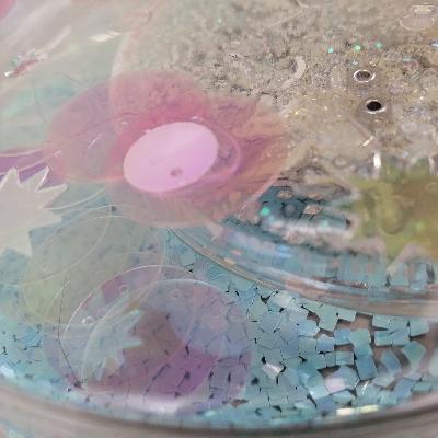 Pilar Pedroza. Glóbulos. Cajas de Petri, lentejuela, pedrería y resina.