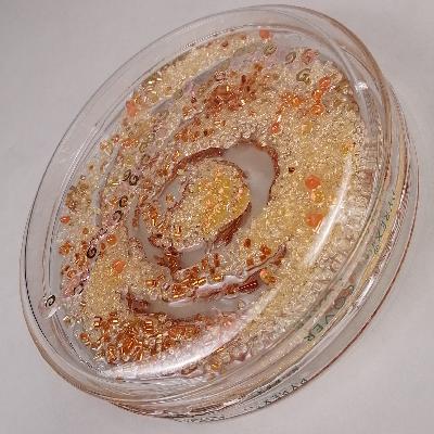 Pilar Pedroza. Micro Quasar. Cajas de Petri, lentejuela, pedrería y resina.