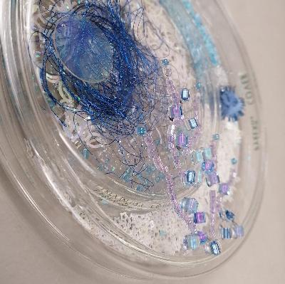 Más informaciónPilar Pedroza. Campo Electromagnético. Cajas de Petri, lentejuela, confeti, brillantina, hilo, pedrería y resina.