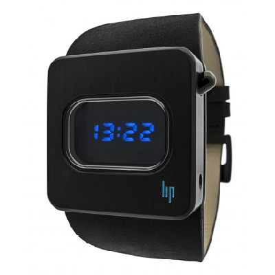 Reloj LIP Diode Blue 1973. Movimiento de cuarzo. Caja cuadrada de 35 x 35 mm. en acero negro con pantalla digital de diodos azules. Pulso en piel negra.